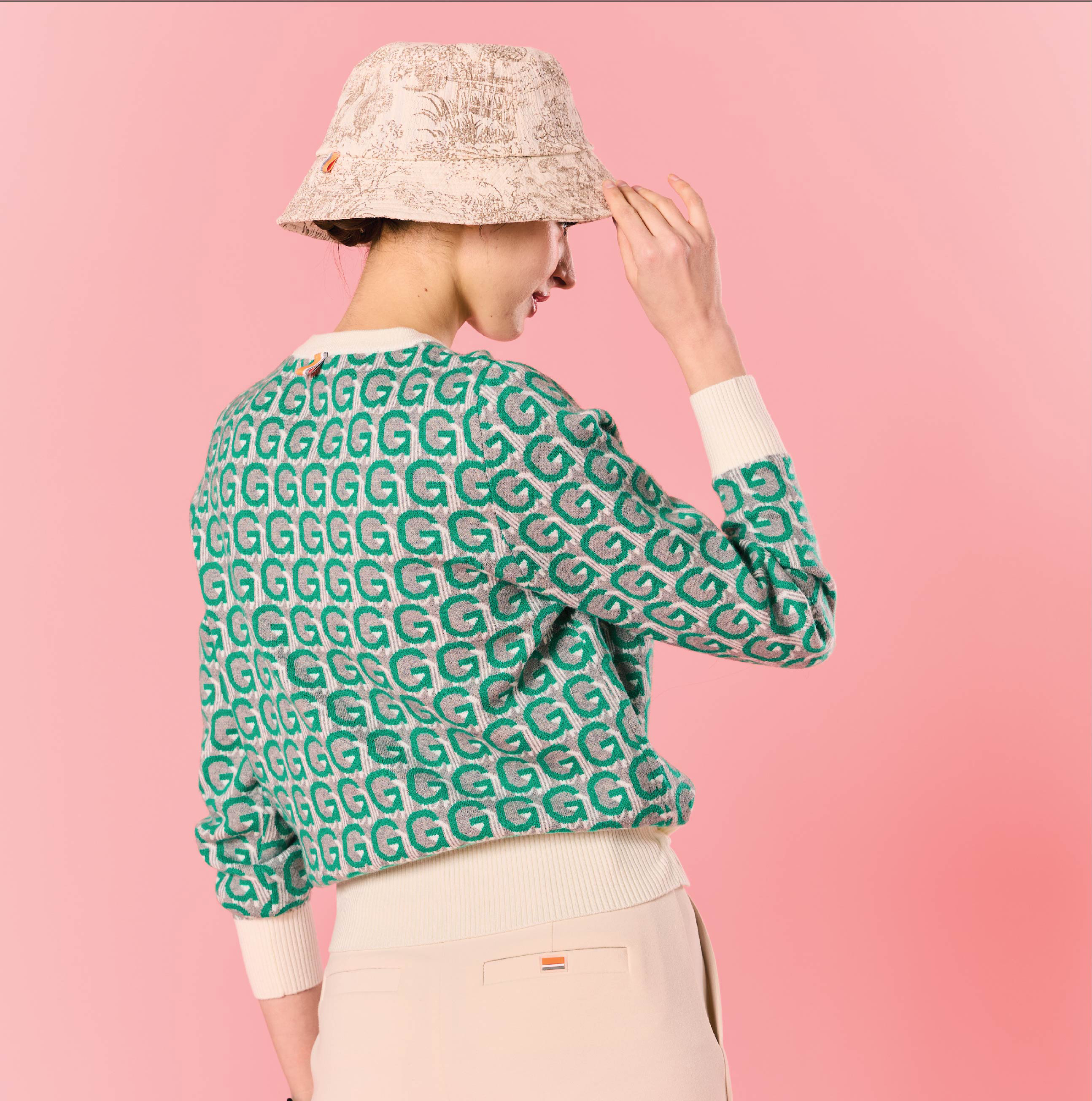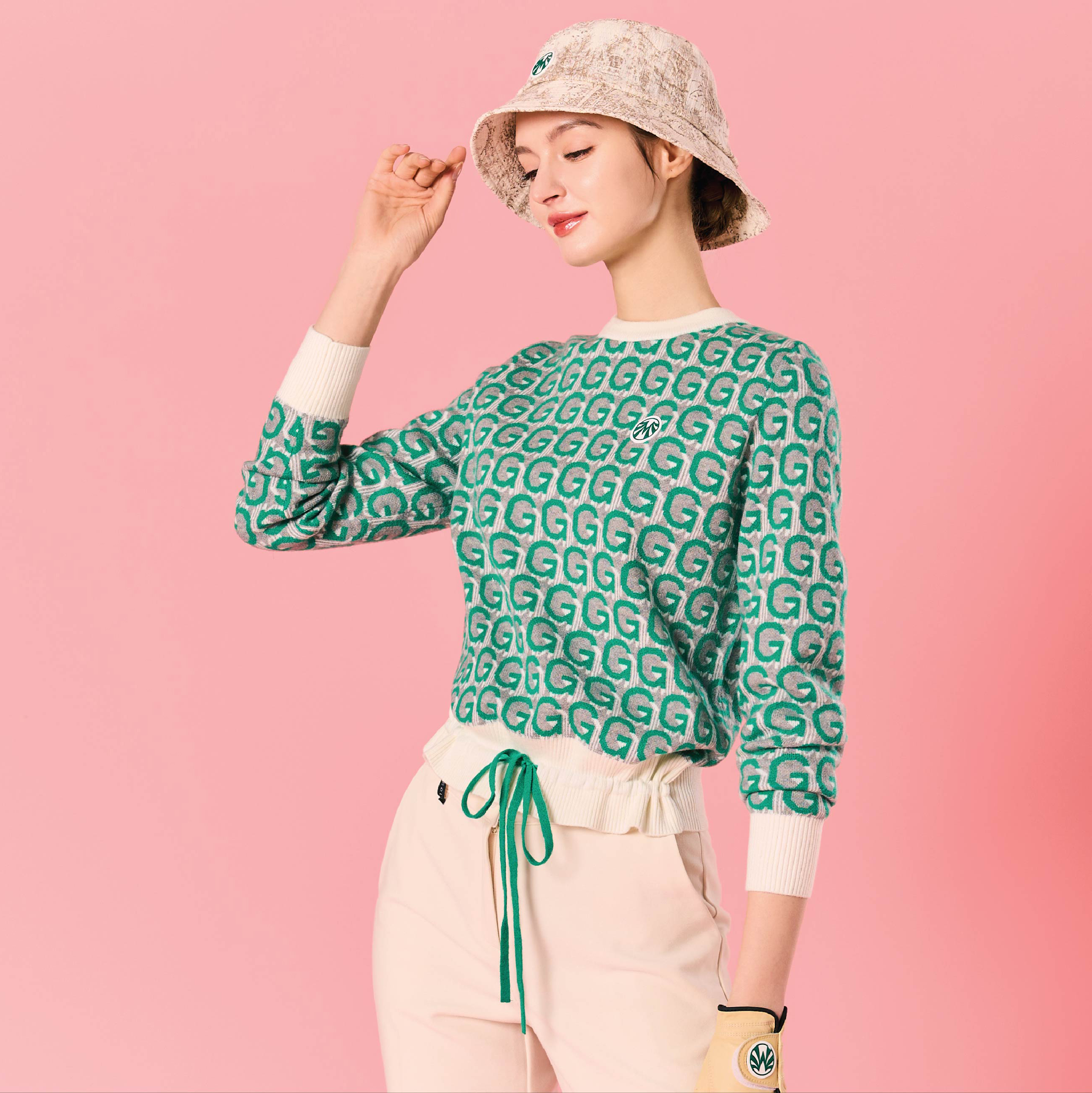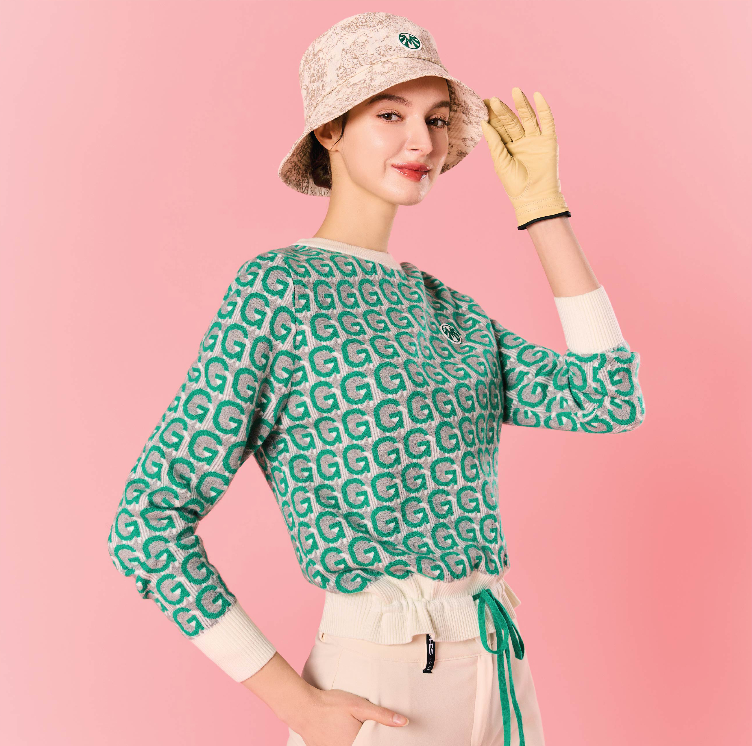 여성 캐시미어 쟈가드패턴 방풍니트 (55~77) GN40860